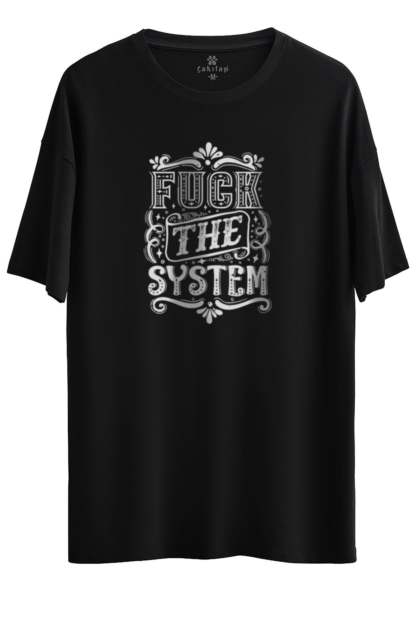 Fuck The Systeam Baskılı Oversize Tişört