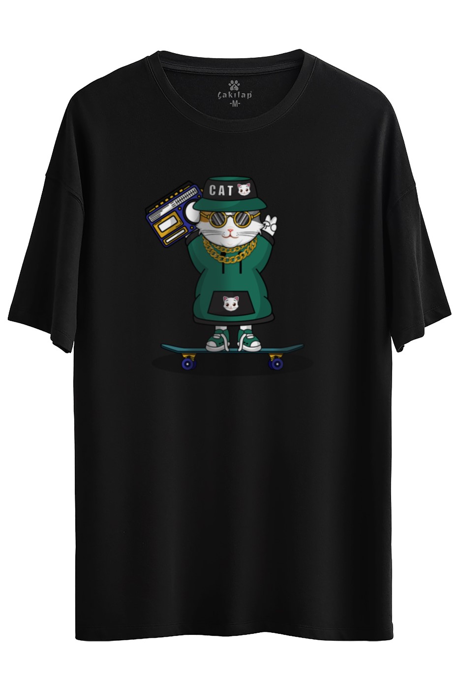 Kedi Baskılı Oversize Tişört
