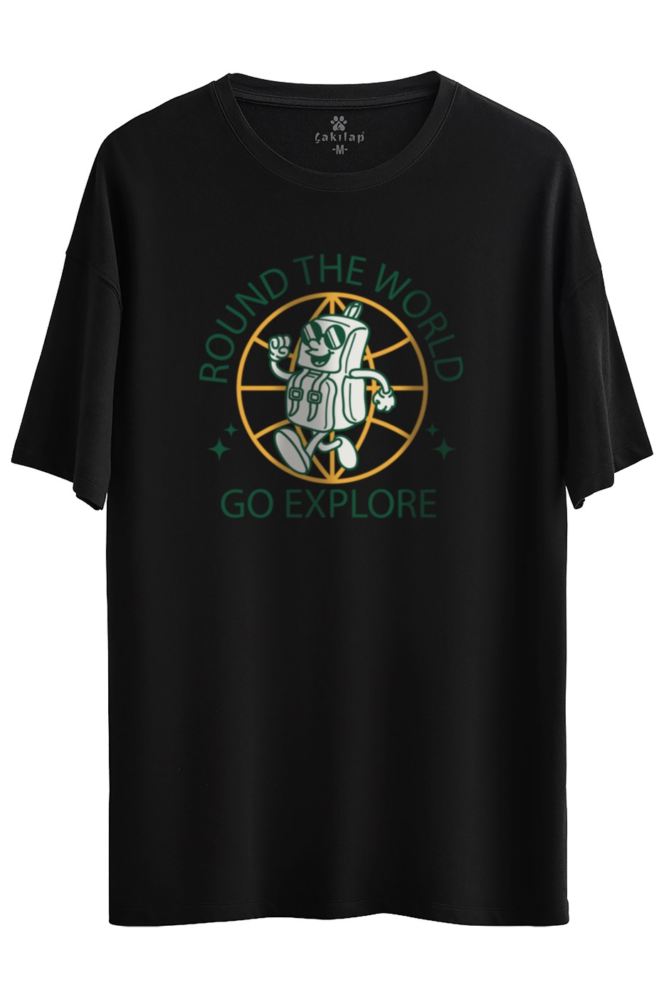 Round The World Go Explore Baskılı Oversize Tişört