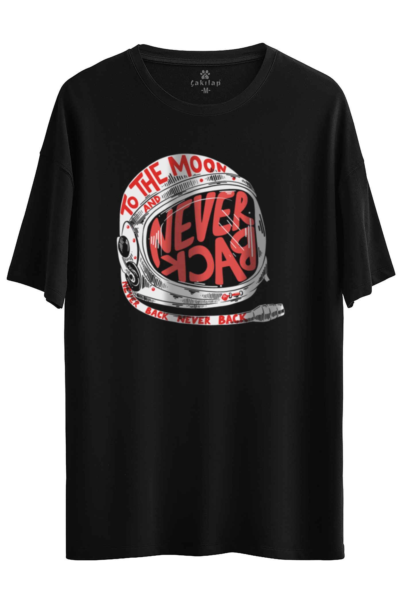 To The Moon And Never Back Baskılı Oversize Tişört